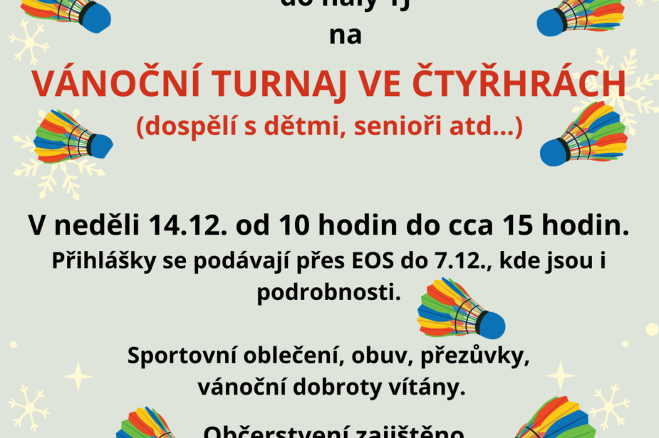Dárek k Vánocům? Co třeba poukaz na badminton? Na recepci našeho sportovního areálu jej pořídíte v otevírací době za 1 500 Kč.